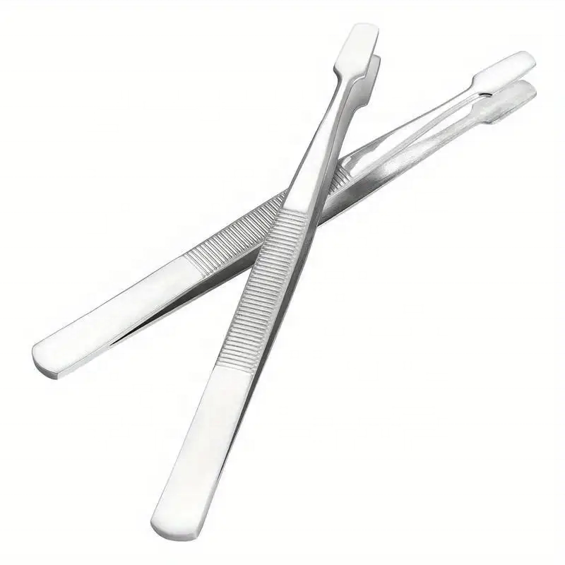 Professional Precision Stainless Steel Stamp Tweezers - Flat & Slotted Tips for Safe Stamp Handling, Ideal Collector's Tool