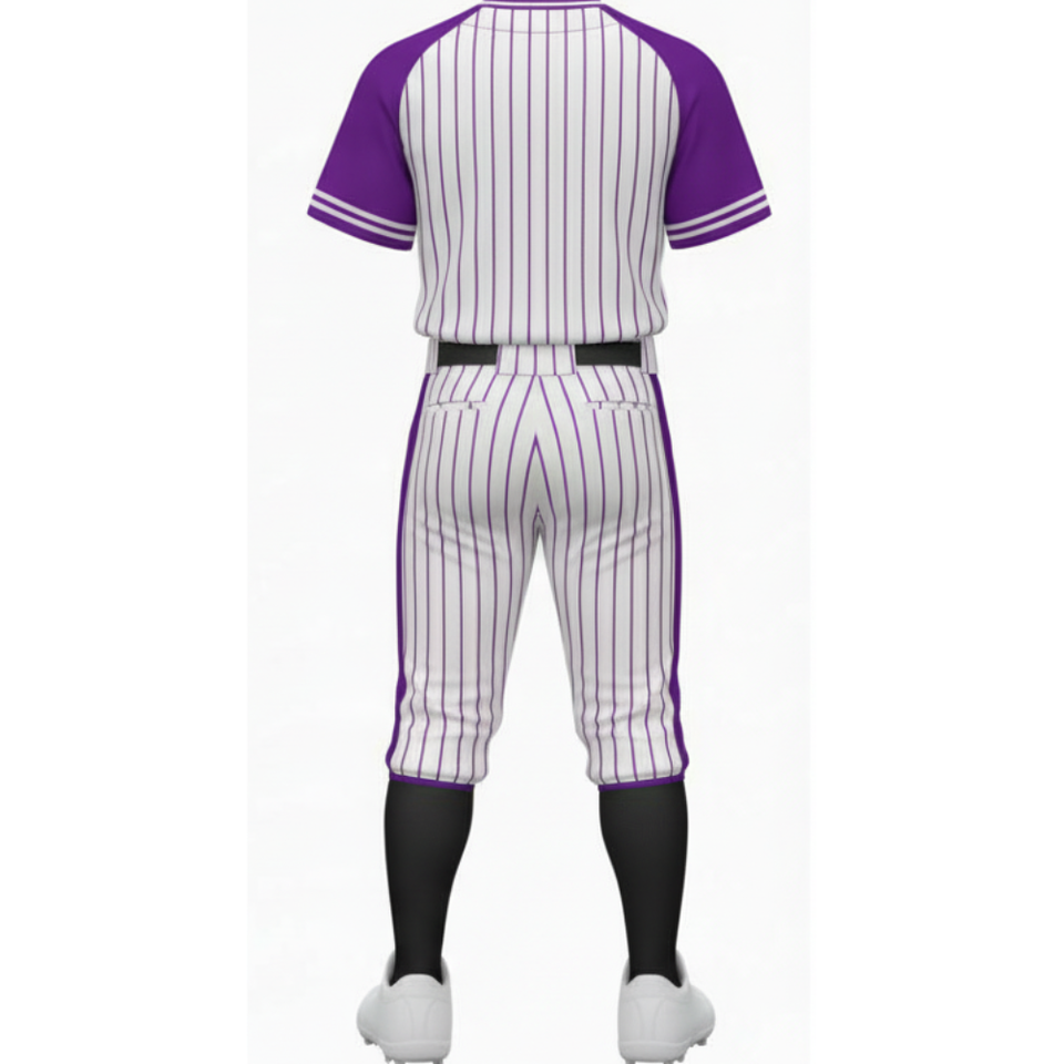 Professional Purple Raglan Baseball Uniform Set White Body with Purple Pinstripes and Matching Pant