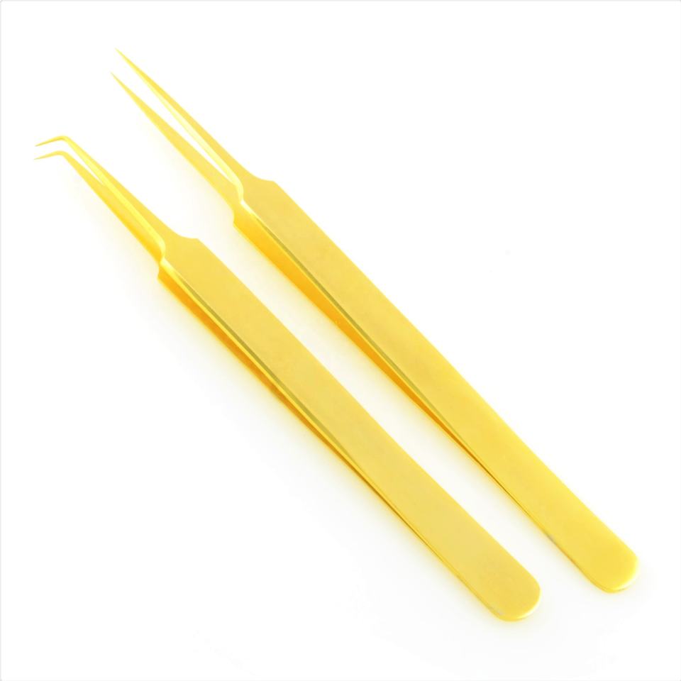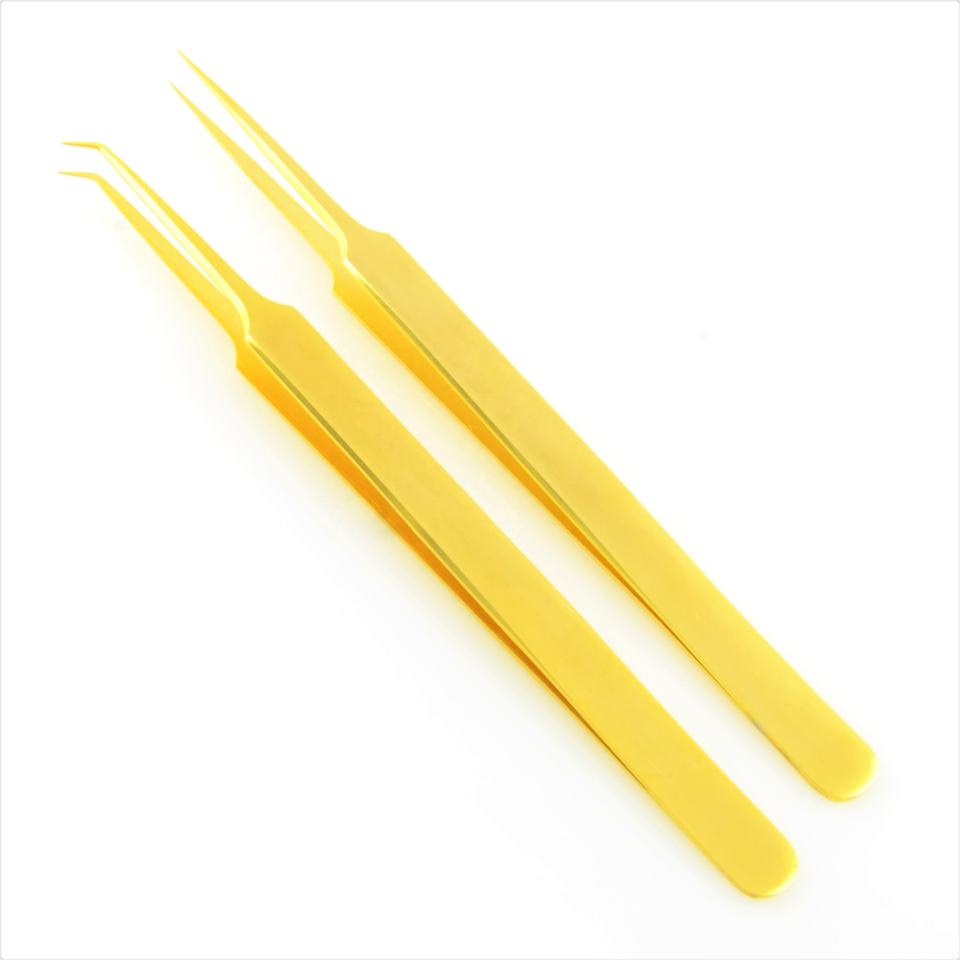 Professional Quality Stainless Steel Eyelash Tweezers 5mm Bend Gold Sharp Fine Points Perfect Grip for False Eyelashes