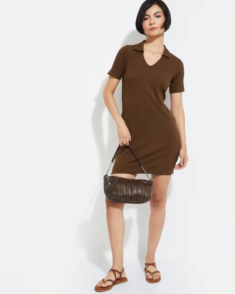Professional Ribbed Short Sleeve Bodycon Dress Manufacturer Knit Mini Dress Custom Logo Printing