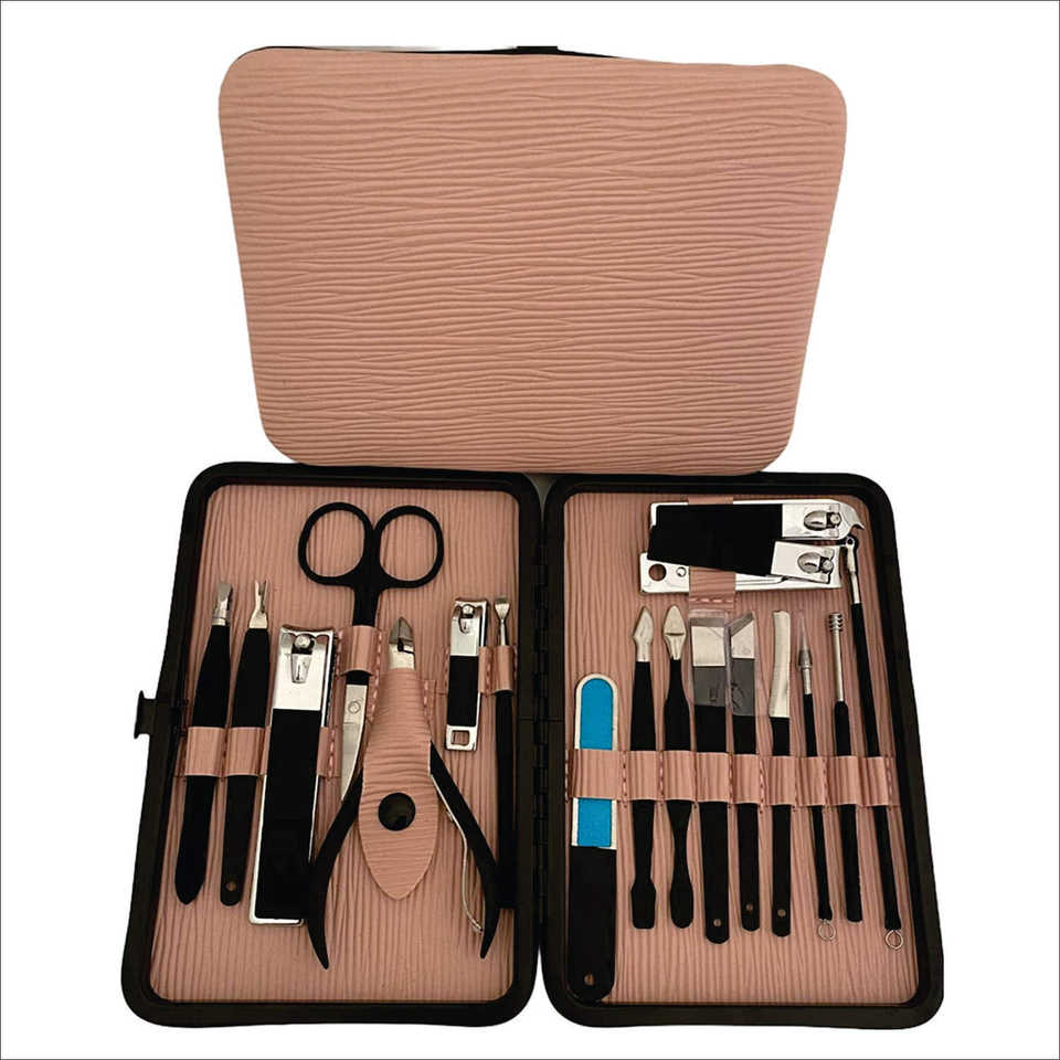 Professional Rose Gold Nail Kit Including Nail Scissor, Cutter, File & Beauty Tweezers With Leather Pouch