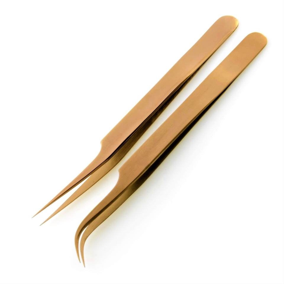 Professional Rose Gold Stainless Steel Eyelash Extension Tweezers Set Handmade Fine Points for Volume False Eyelashes