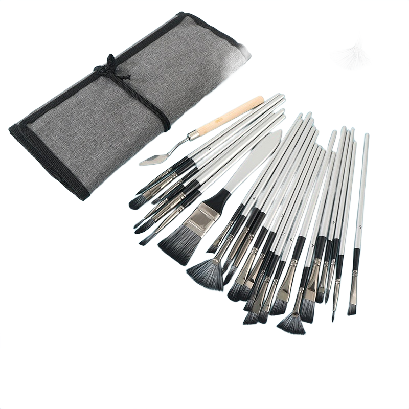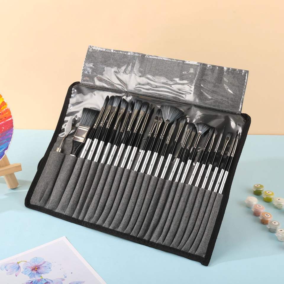 Professional SHENGCHENG 24 Pcs Artist Brush Set Premium Nylon Hair Wooden Handle Smooth Stroke for Acrylic Oil Watercolor
