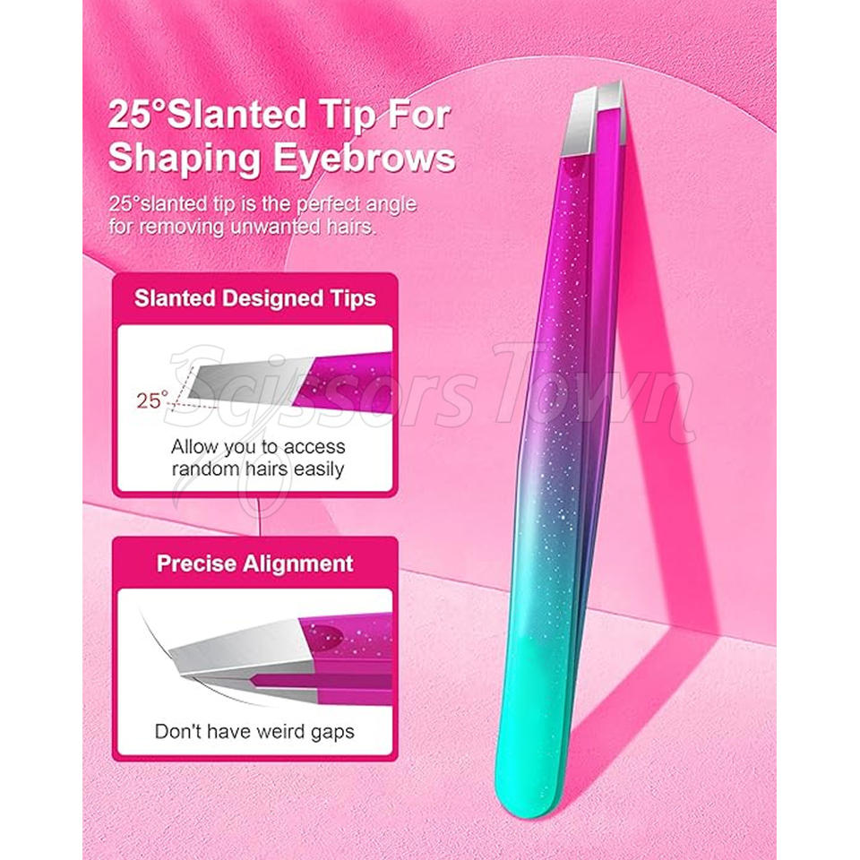 Professional Slant Tip Tweezers for Eyebrows with Custom Logo High Quality for Beauty Tools