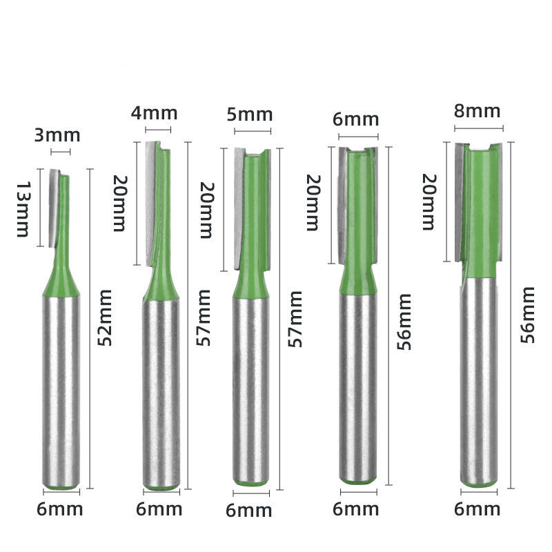 Professional Slotting and Trimming Knife Set 8 PCS Green Double-Edged Straight Cutters for Electric Wood Milling