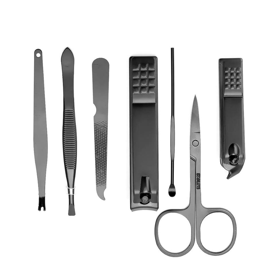 Professional 7-Piece Stainless Steel Nail Clippers Set Portable Travel Manicure Pedicure Kit Scissors Tweezers Nail Brush