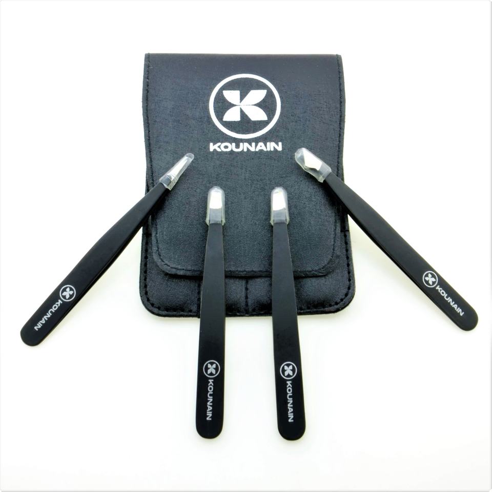 Professional Stainless Steel Eyebrow Tweezers Set 4 Slanted Tip Black Case Eco-Friendly Ingrown Hair Splinter Removal Beauty