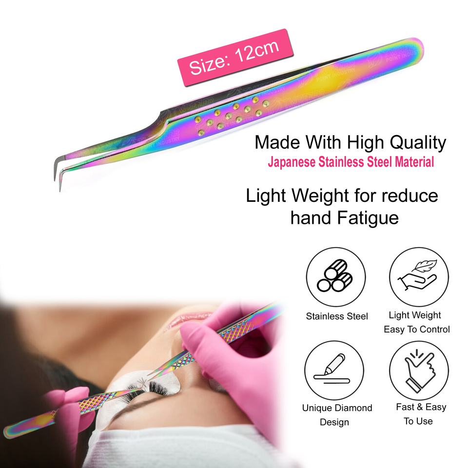 Professional Stainless Steel Eyelash Extension Tweezers With Pointed tip Colorful Applicator for Easy use Beauty Tools