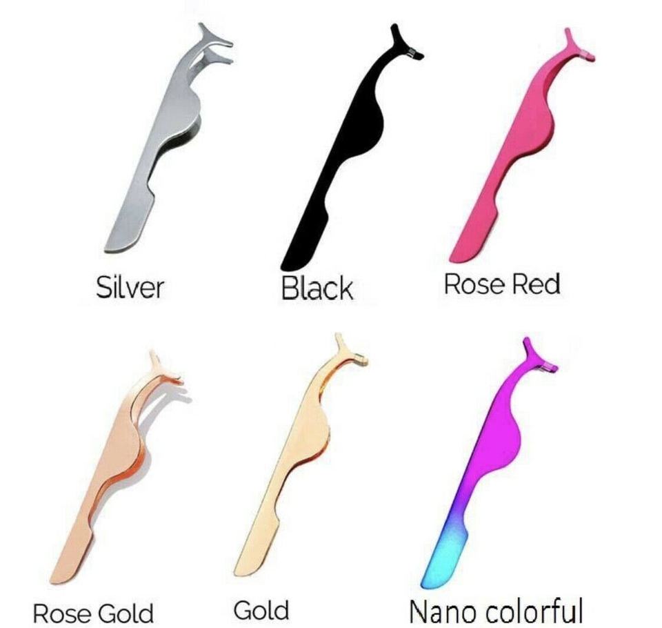 Professional Stainless Steel Eyelash Tweezer False Eyelashes Applicator Tool Black 6 Colours
