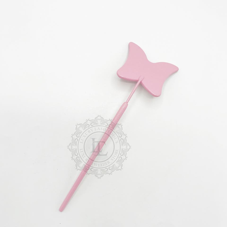 Professional Stainless Steel Makeup Mirror Pink Powder Coating with Silver Glitter Butterfly Shape Eyelash Extension Feature