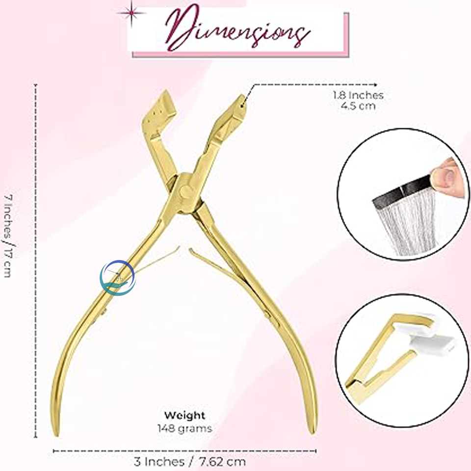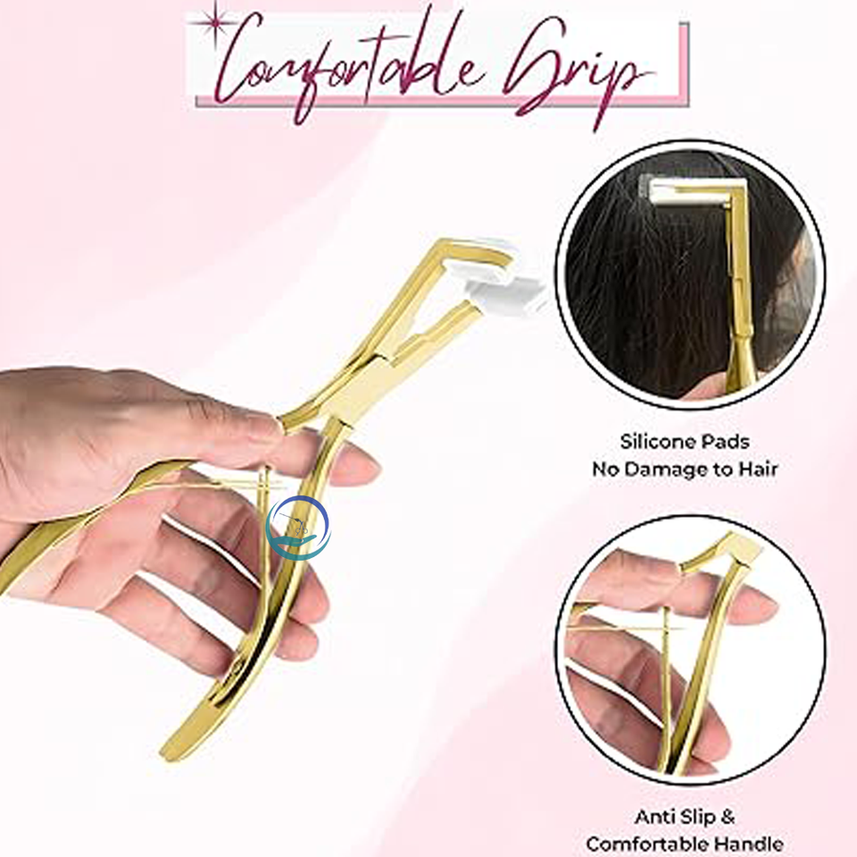 Professional Stainless Steel Tape In Hair Extension Plier Gold Clamp Tool for Hair Extension Clamp Tool with Silicone Pads