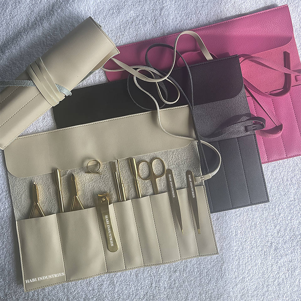 Professional Steel Manicure Pedicure Nail Care Tool Set Cuticle Shear Leather Case Tweezers Beauty Salons Box Wholesaler