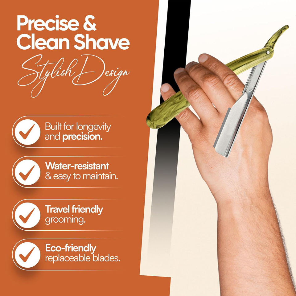 Professional Men's 2mm Exposed Blade Straight Edge Barber Razor Kit with Yellow Marble Design Close Shaving