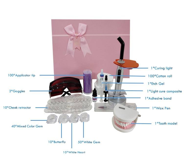 Professional Teeth Whitening Crystal Decoration Diamond Tooth Gem Kit with Dentex Curing Light and Glue Gift Box