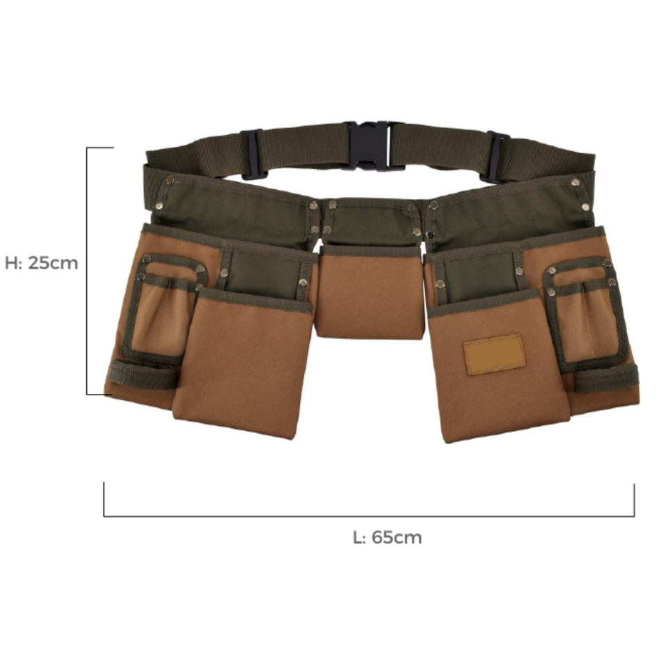 Professional Waterproof 9-Pocket Nylon Tool Belt | Adjustable Work Belt with 2 Hammer Loops for Electricians & Carpenters