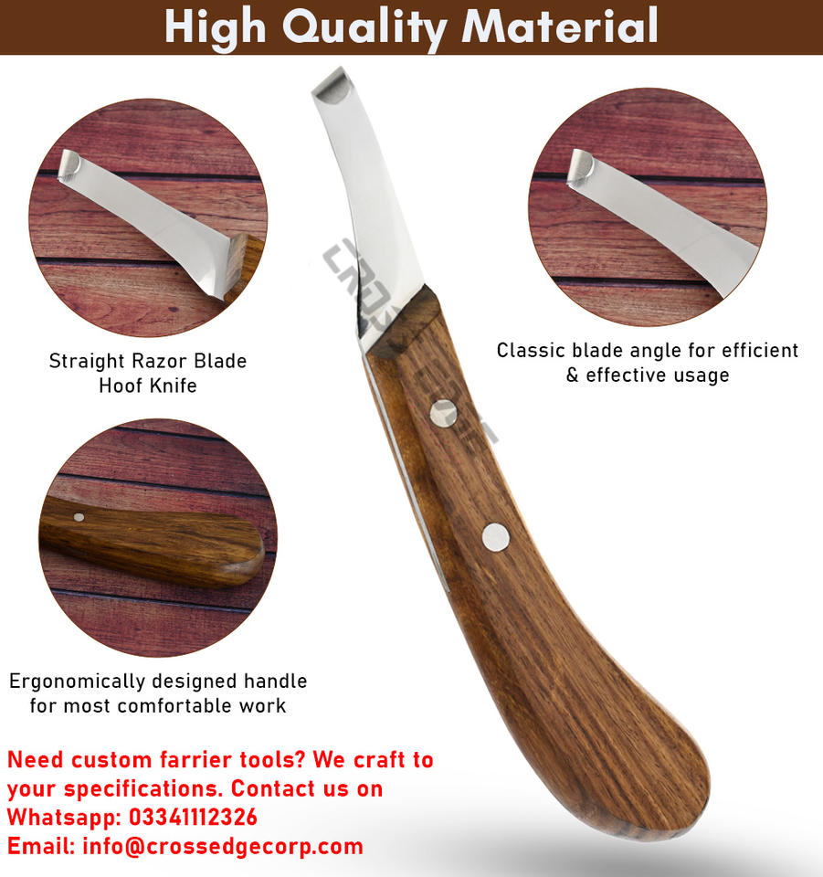 Professional Wooden Handle Hoof Knife Farrier Tool Stainless Straight Blade Sharp Razor Trimming Hooves Hoof Maintenance Tool