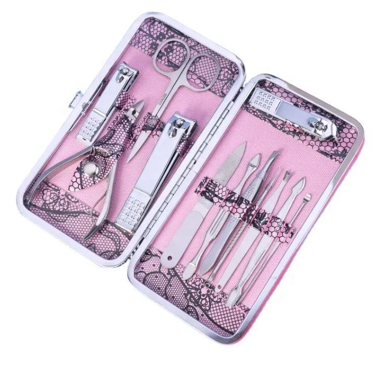 12 Pieces Manicure and Pedicure Set Professional Stainless Steel Grooming Kit for Nail Care and Beauty Salons