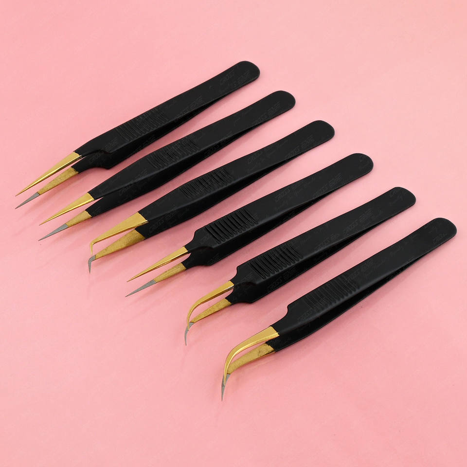 MOQ:5 Pcs stainless steel fiber tip lash tweezer Black color anti-slip