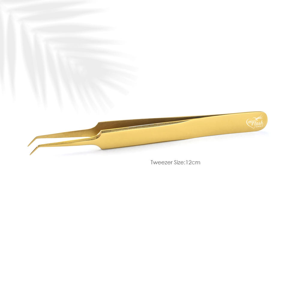 Color:Customer's Choice 90 degree eyelash tweezers gold color
