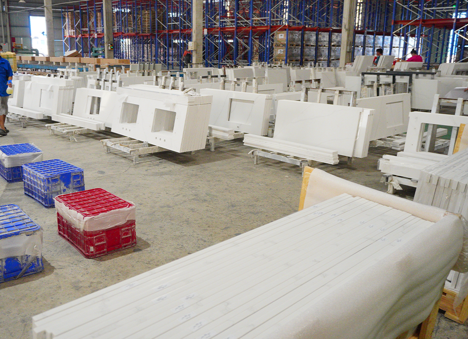 Project NV760 Handmade Artificial Stone Quartz Carrara Ella White Kitchen Cabinet Top Worktops Quartz Countertop