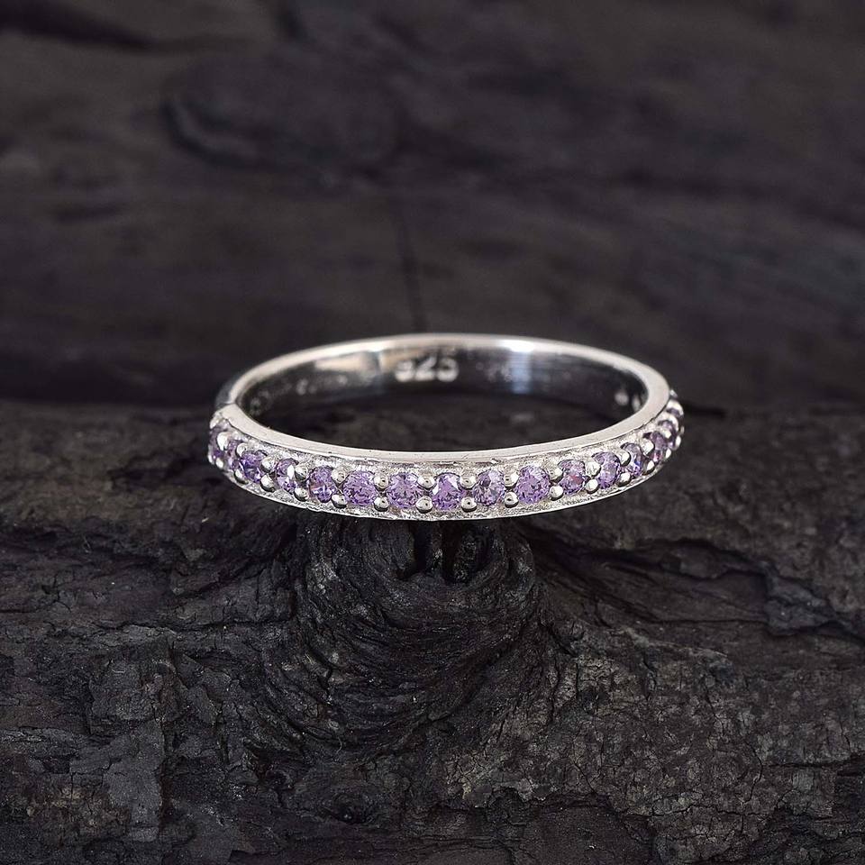 Promise Band Dainty Ring Fine Jewelry 925 Sterling Silver Natural Pure Amethyst Gemstone Half Eternity Engagement Purple Trendy