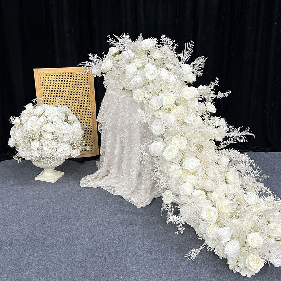 Promise Factory Wholesale White Rose Banquet Baby Breath Flower Artificial Flower Ball Table Centerpiece for Wedding Decoration