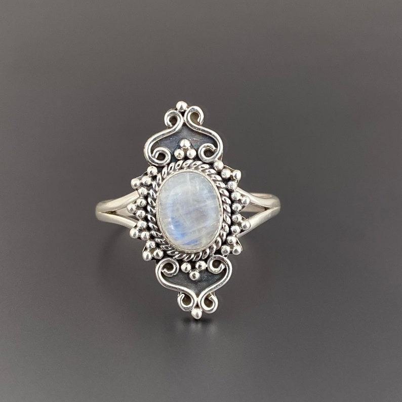 Promise Ring 925 Solid Sterling Silver Handmade Statement Natural Blue Fire Rainbow Moonstone 925 Stamp Handmade Ring Jewelry
