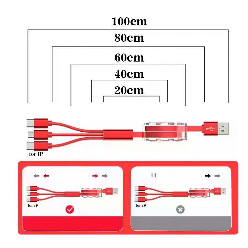 Promo Gift Customized Logo 1M Meter 3-in-1 Retractable USB Cable TPE Fast Charging Flexible Charger for IOS Type C Wholesale