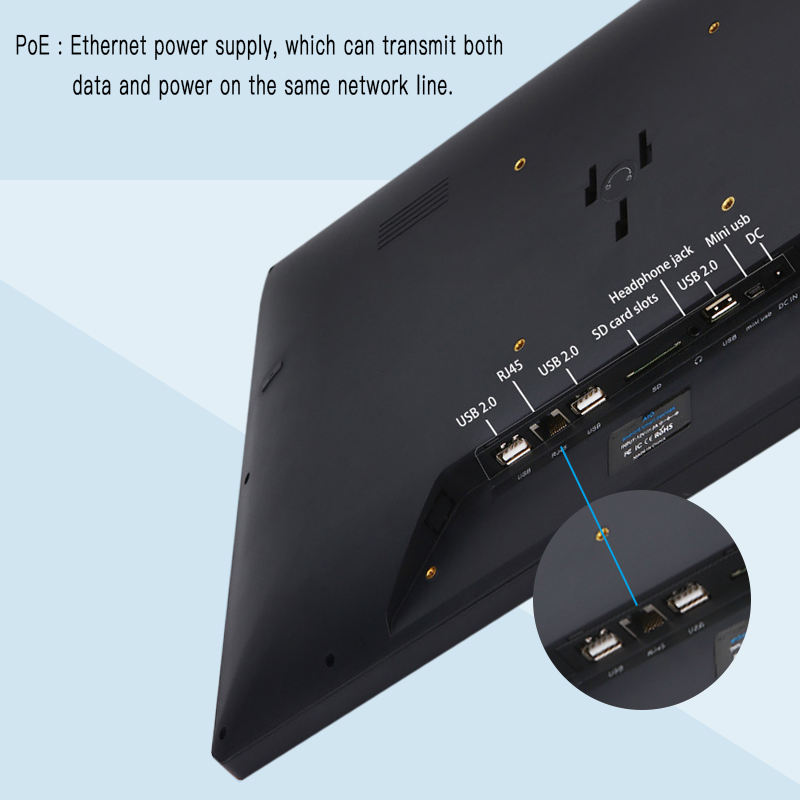 USB, Bluetooth, Ethernet, Wi-Fi, 3.5mm Jack, H-DMI, RJ45, Earphone, POEconnectivity technology