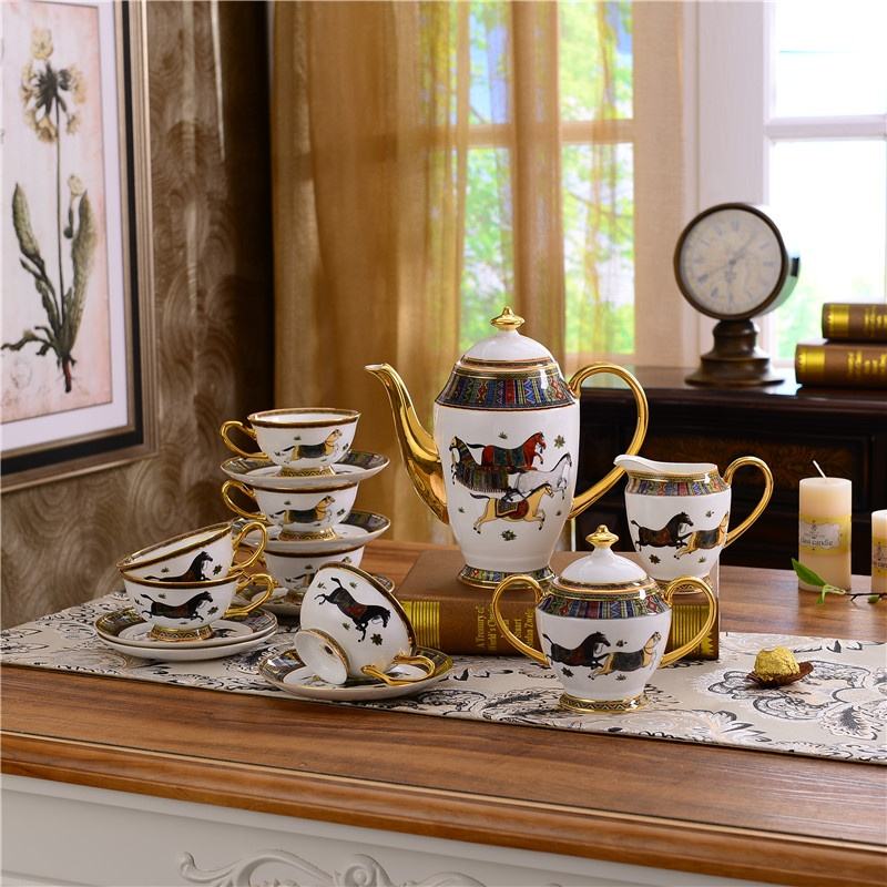 Promotion 15 Pcs Nordic Royal War Horses Porcelain Coffee Tea Cups Set for Home Decors