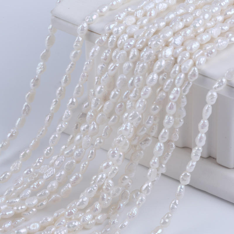 Promotion 4-5mm Natural Freshwater Cultured Rice Pearl Necklace Straight Hole River Clam Bead String Semi-Finished DIY Bracelet