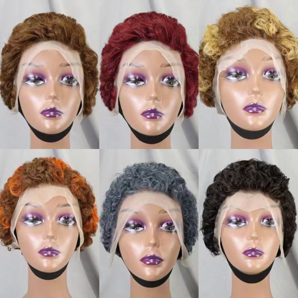 Promotion Letsfly 17$ Wholesales Grey Color Pixie Cut13x4 Lace Wigs F-996 Short Pixie Cut Wigs Natural Human Hair Cheap Wigs