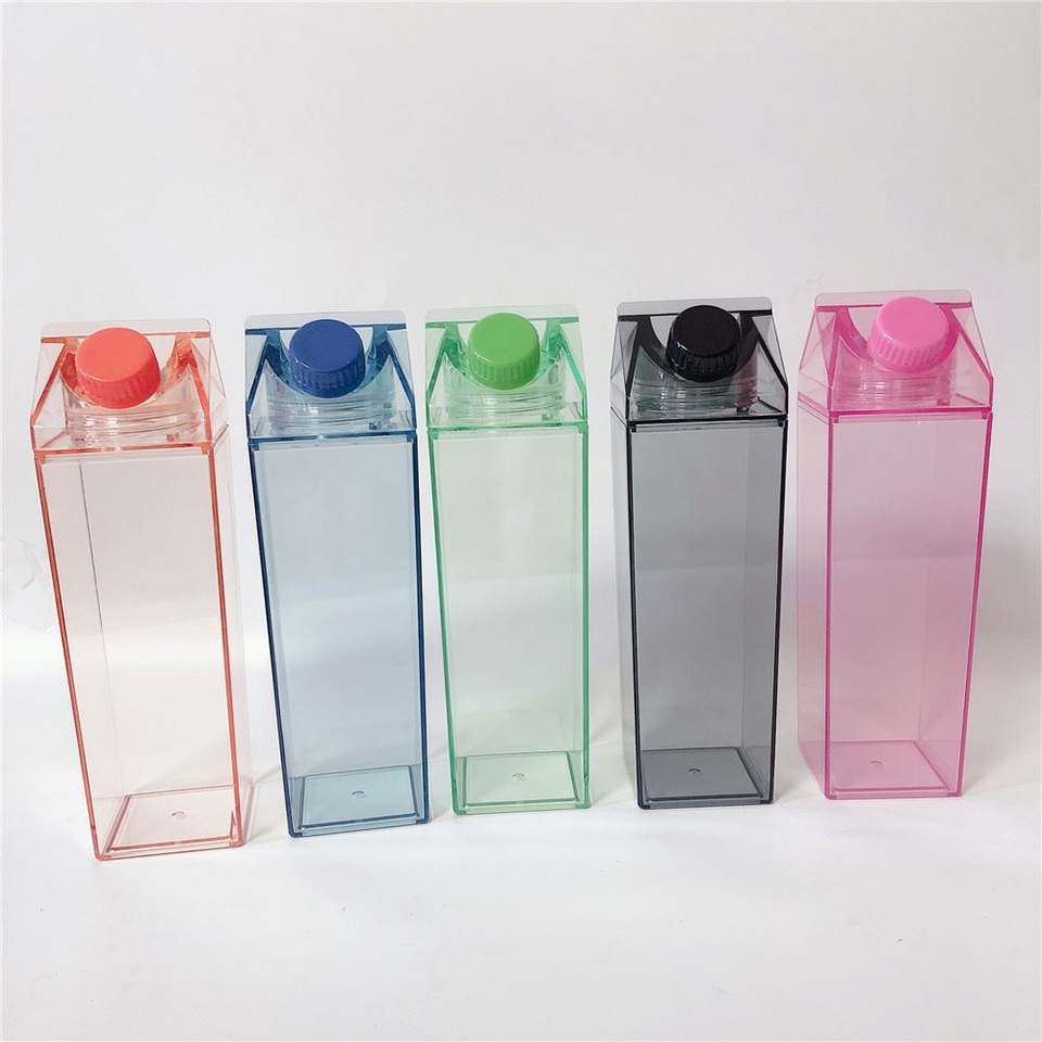 Promotional Bulk Clear BPA Free Square Sports Acrylic Tumbler 500Ml Milk Carton Plastic Drinking Water Bottle