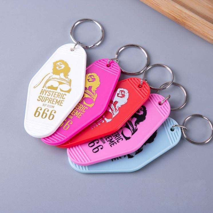 Promotional Custom logo Color Material Key Tags Blank Plastic Retro Vintage Motel Room Hotel Keychain