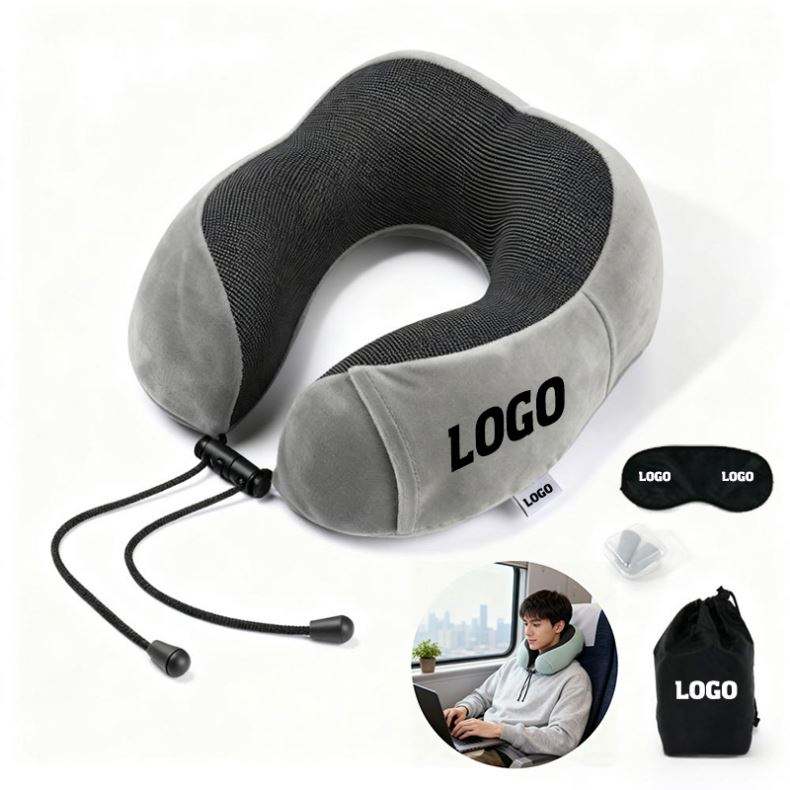 Promotional Gift Custom Logo Printed Memory Foam Fof Travel Neck Shaport Pillow