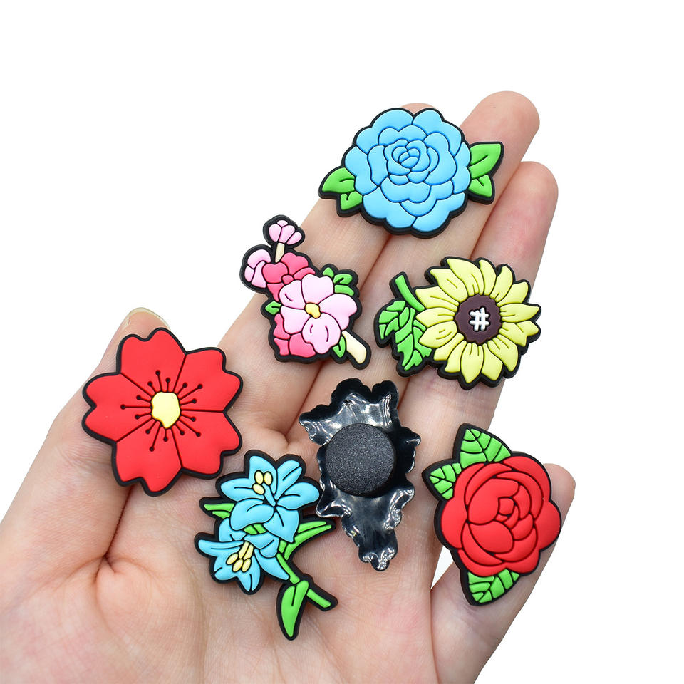 Promotional Gift Low MOQ Custom Flowers Shape Brand Logo Soft PVC Rubber Waterproof Garden Clog Decoration Custom Shoe Charms