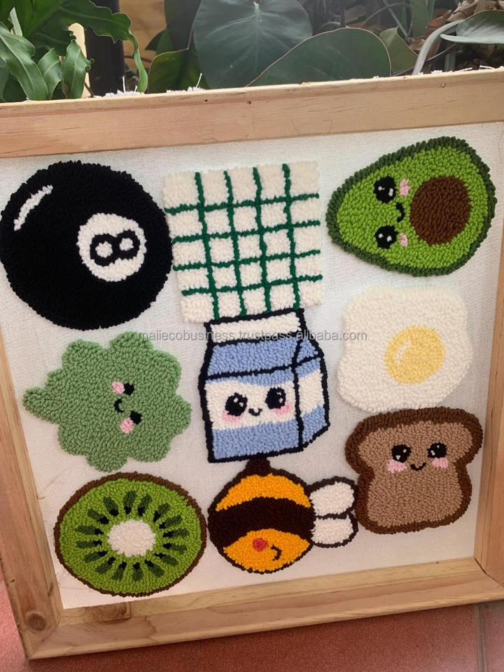 Promotional Handmade Punch Needle Coasters Cute Flower Pattern Wool Mug Rug Coaster Customizable Handicrafts