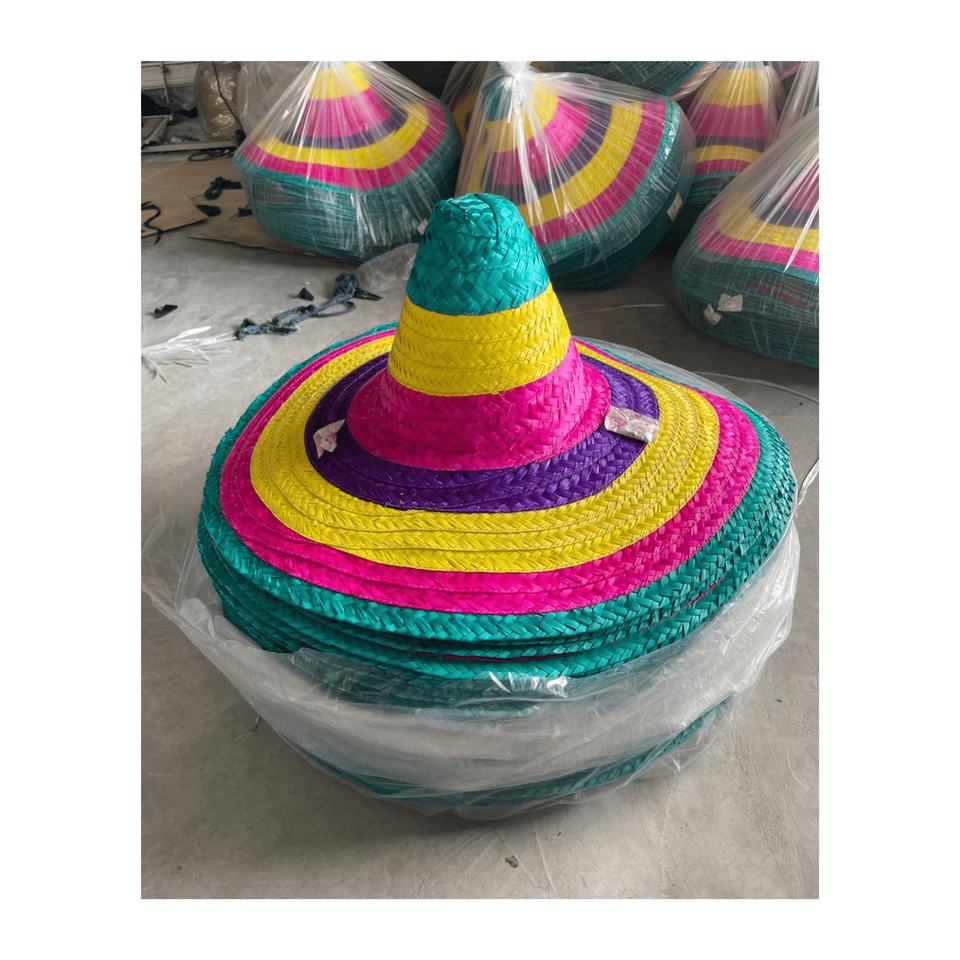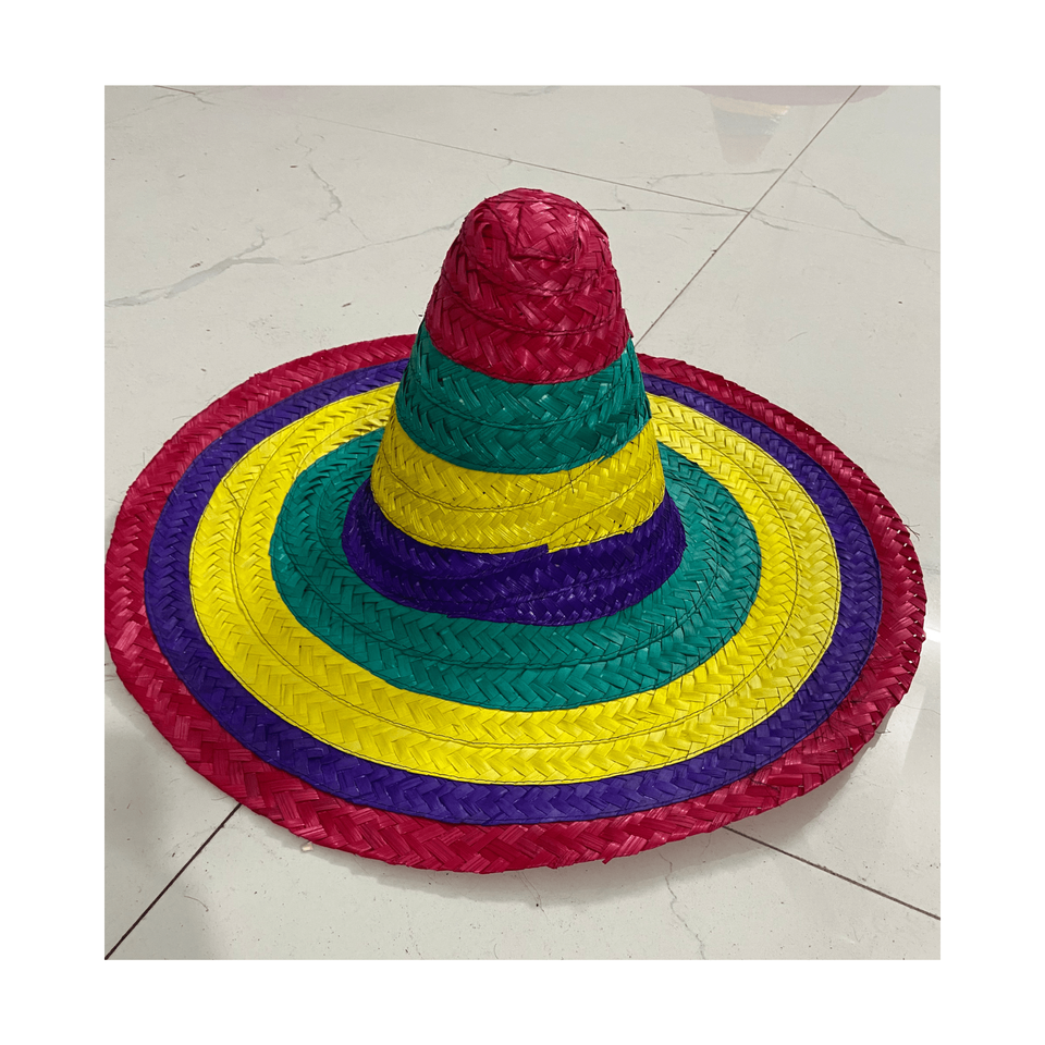 Promotional Handmade Straw Sombrero Hats Carnival Events Party Supplies Bamboo Braided Mexican Hat Rainbow Edge