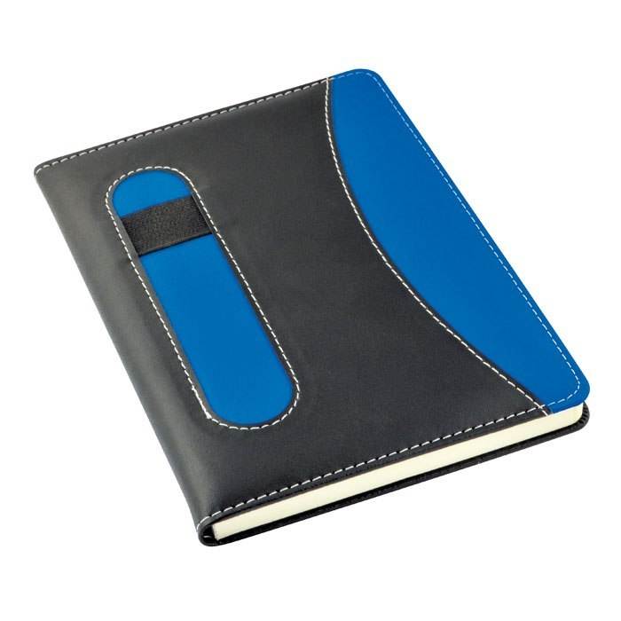 Promotional Notebook Blue Black Leather Style With Elastic Closure A5 Size