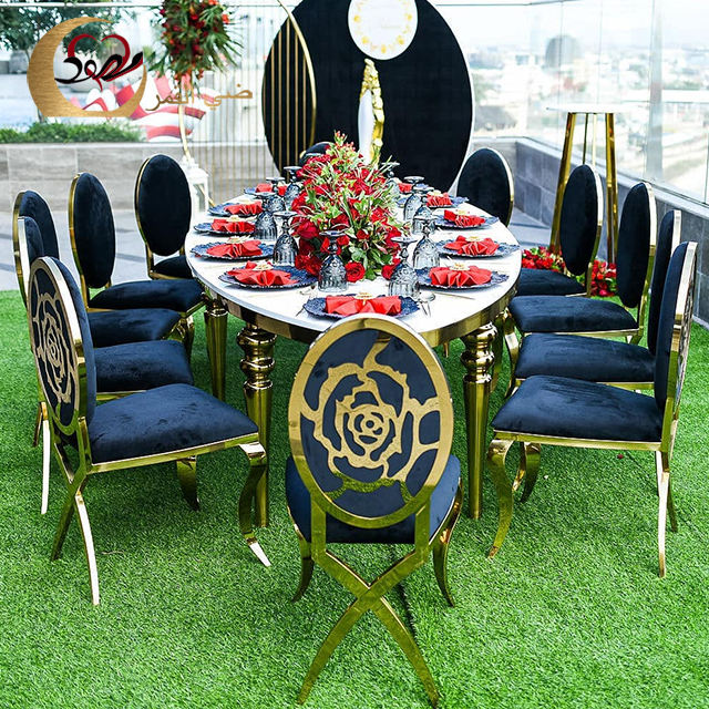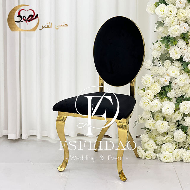 Promotional OEM Low Price Modern Romantic&Elegant Rose Back Gold Frame Stainless Steel Black Velvet Outdoor Hotel Dining Chair