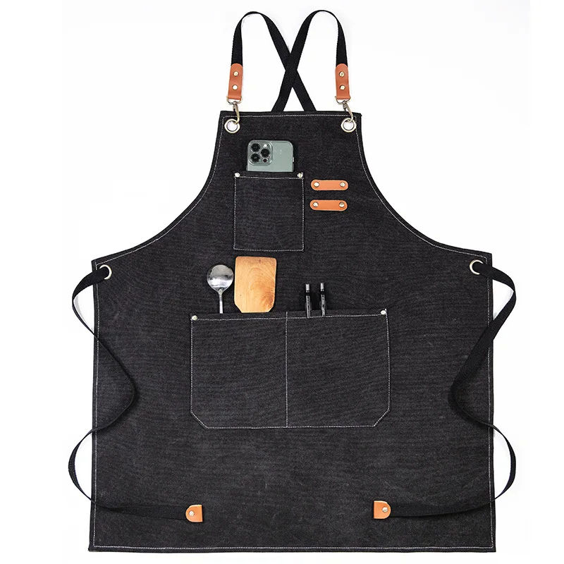 Promotional Women Men Brown Adjustable White Pinstripe Cotton Painting Cooking Kitchen Bib Apron