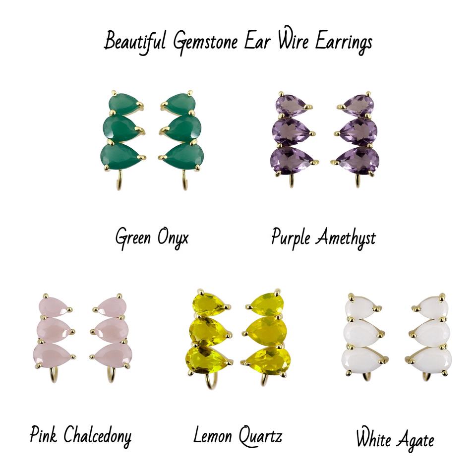 Prong Set Lemon Quartz Handmade Gemstone Pear Shape Gold Plated Women's Anniversary Ear Climbers Fashion Hook Earrings Drop