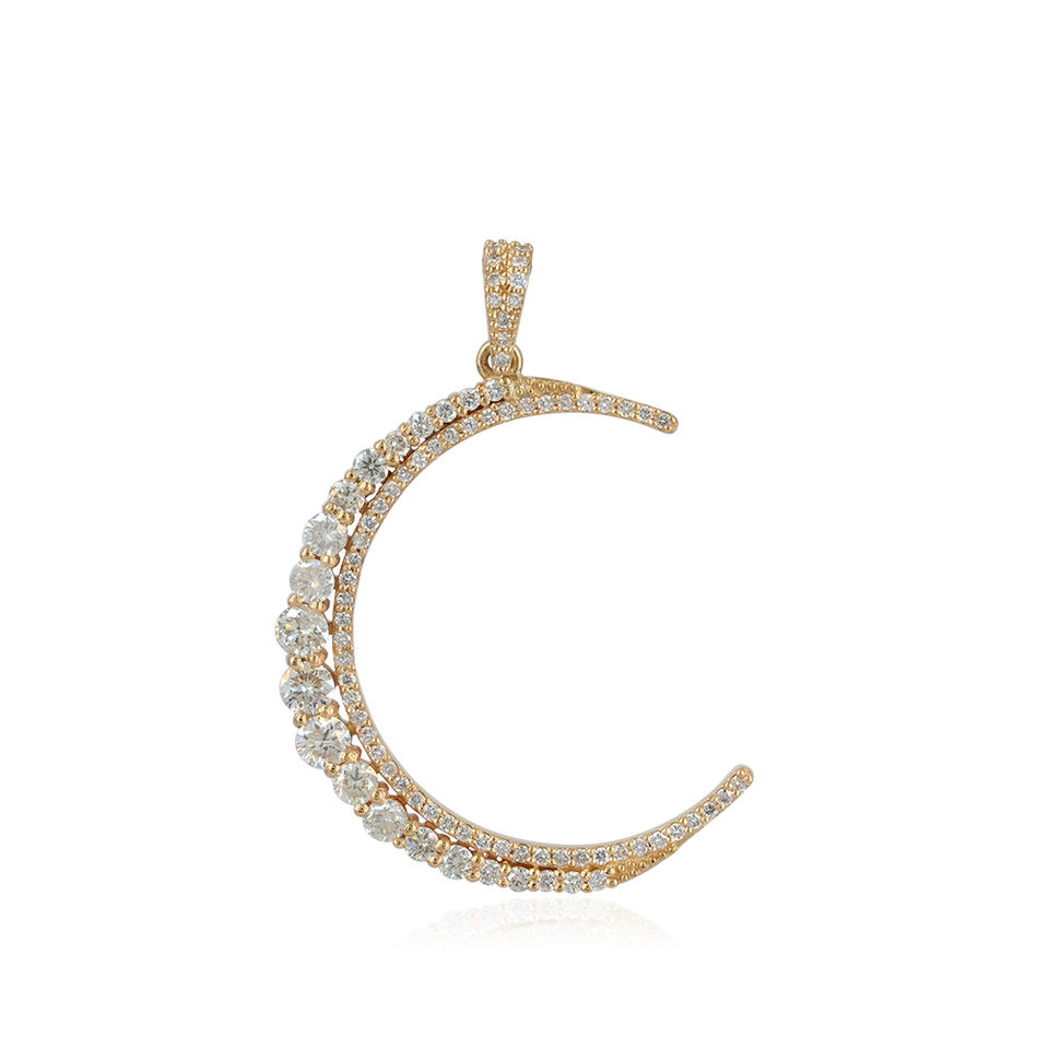 Prong Set Natural Diamond 14k Yellow Gold Crescent Moon Handmade Charm Pendant Fine Jewelry Wholesale Birthday Gift