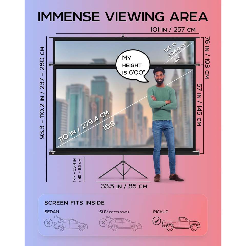 PropVue 120-Inch Electric Projector Screen with Stand Indoor Outdoor HD 4:3 Projection for Movies & Office Presentations
