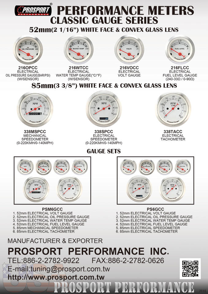 Prosport 52mm 85mm Classic Series Best Aftermarket Gauge Set 6 Gauge Electrical Speedometer Tachometer Water Temp Volt
