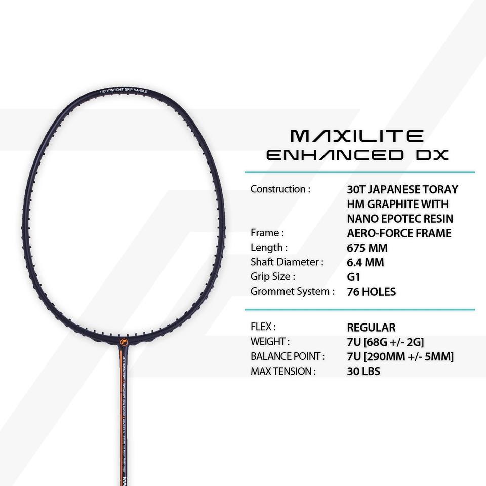 Protech Maxilite Enhanced DX LITE Lightweight 82g Badminton Racket 24T Japanese Toray HM Graphite Frame for Powerful Performance