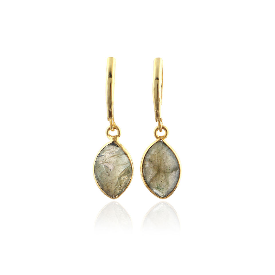 Protection Jewelry Natural Flashy Labradorite Bezel Setting Clip-on Earring Brass 18k Gold Plated Marquise Shape Statement Drops