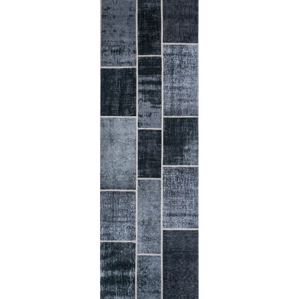 Provenance Hand Knotted Wool Rug Grey & Black Pae-3418 Patchwork Pattern for Home Living Room Decor for Teenagers Hallway Use