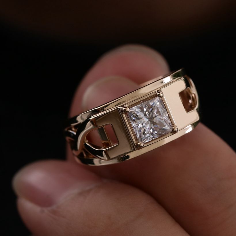 Provence Jewelry Customized 1ct DEF/VVS Princess Cut Moissanite Diamond Gold Ring 14k Yellow Solid Gold Rings Fine Jewelry