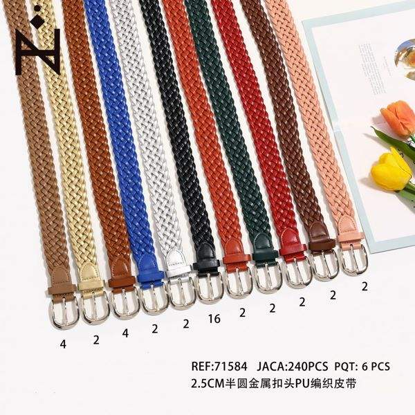 Pu Braided Leather Belt 2.5Cm Semi Circular Metal Buckle Fashion Casual Wear